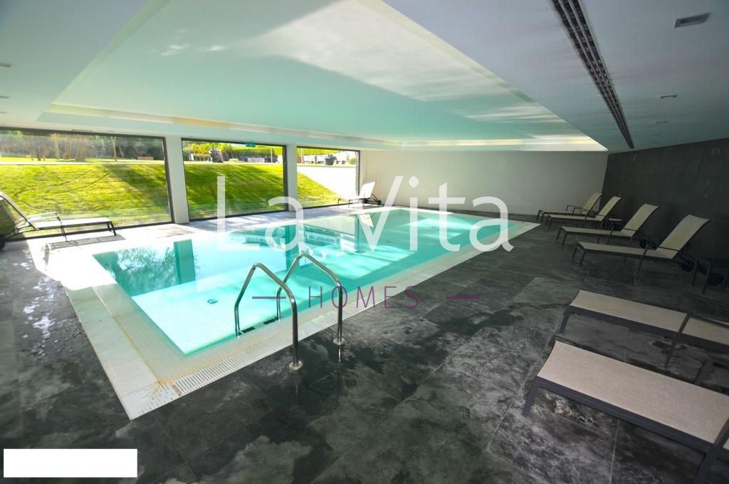 No condomínio poderá desfrutar de piscinas exteriores e interior, jacuzzi, sauna, banho turco, jardins e segurança 24 horas por dia.