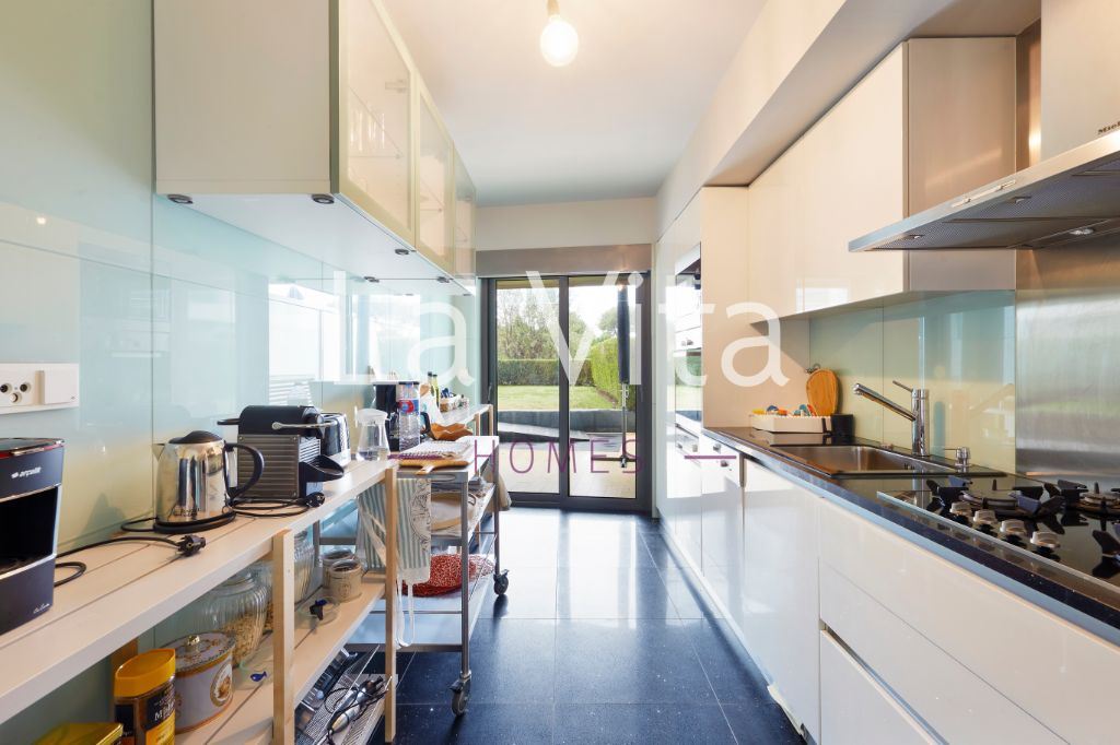 Todas as divisões com acesso ao jardim , sala com 32 m2, cozinha totalmente equipada, wc social e 1 suite.