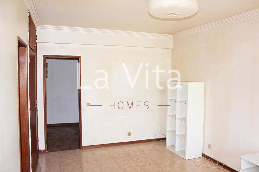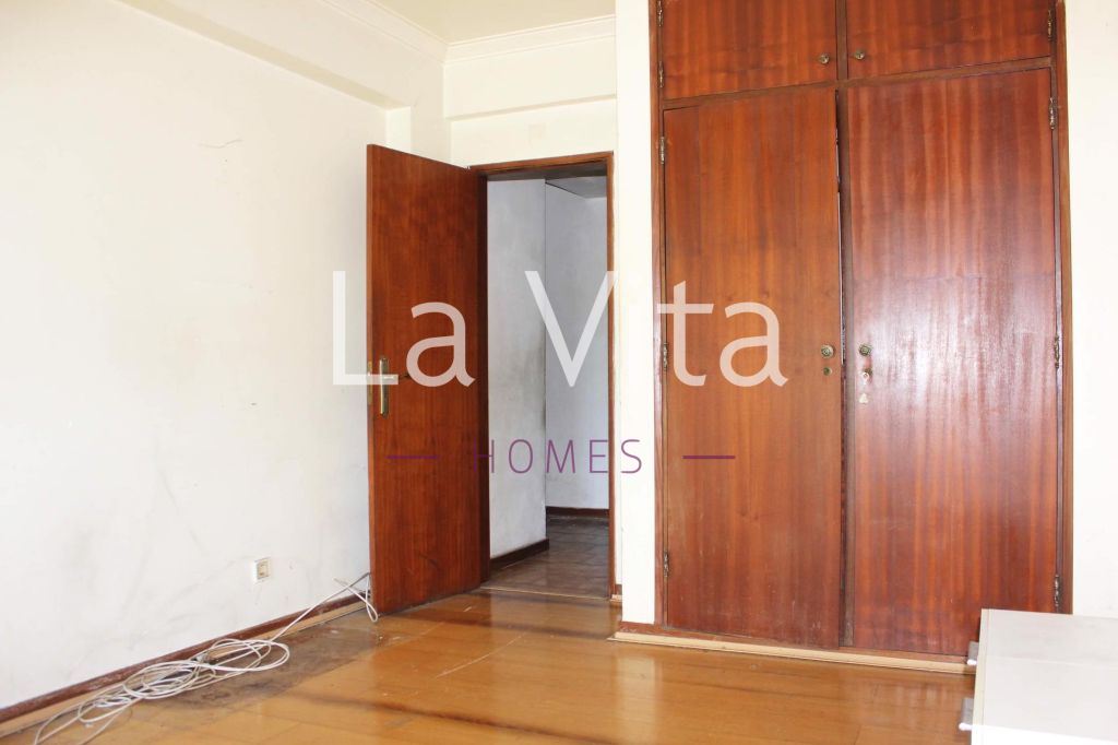 Composto por: Hall de entrada; cozinha e sala de jantar com ligação para a varanda, atualmente fechada, um quarto com roupeiro e mais um espaço que pode ser quarto ou escritório.