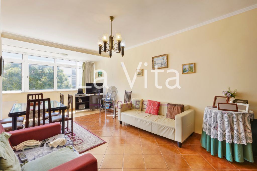 Este apartamento, originalmente um T3, é agora composto por sala com (22m2), sala de refeições (11 m2), 2 quartos (12 e 10 m2), ampla cozinha (13 m2), wc e despensa.