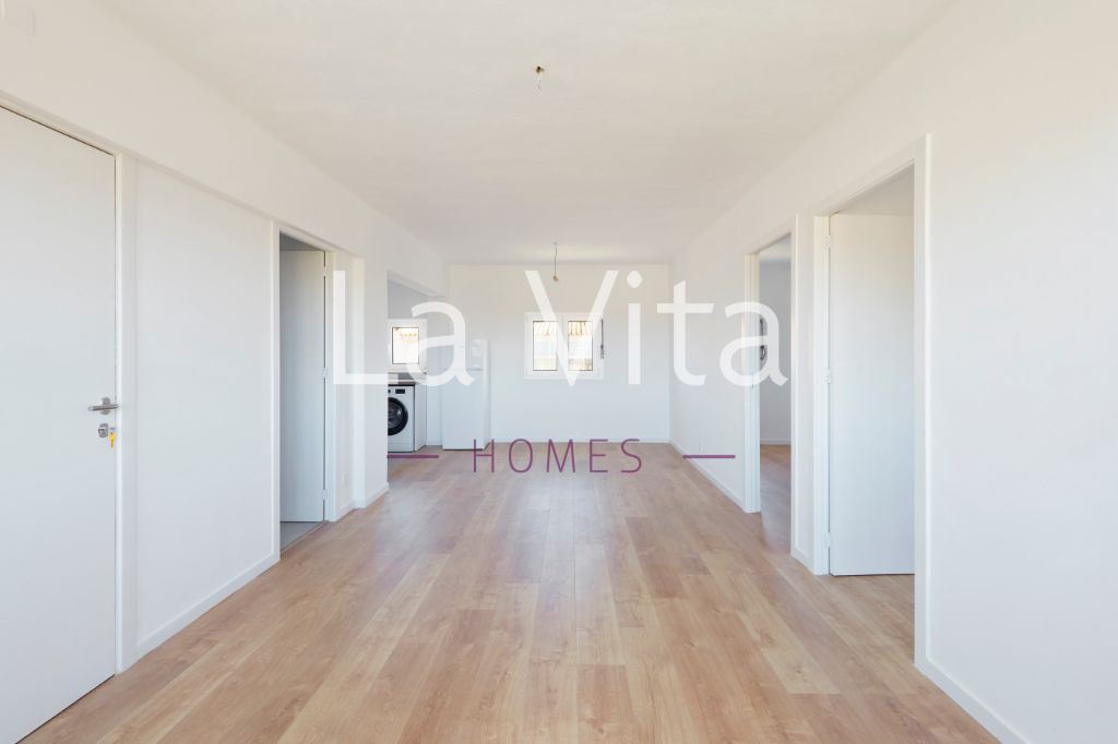 Composto por sala com 26 m2, cozinha totalmente equipada, 1 wc completo e dois quartos com 11 e 9 m2. Apartamento em terceiro andar sem elevador.