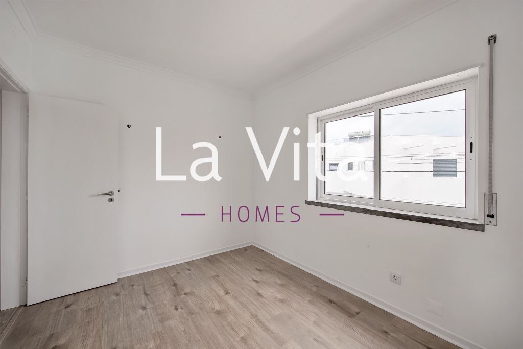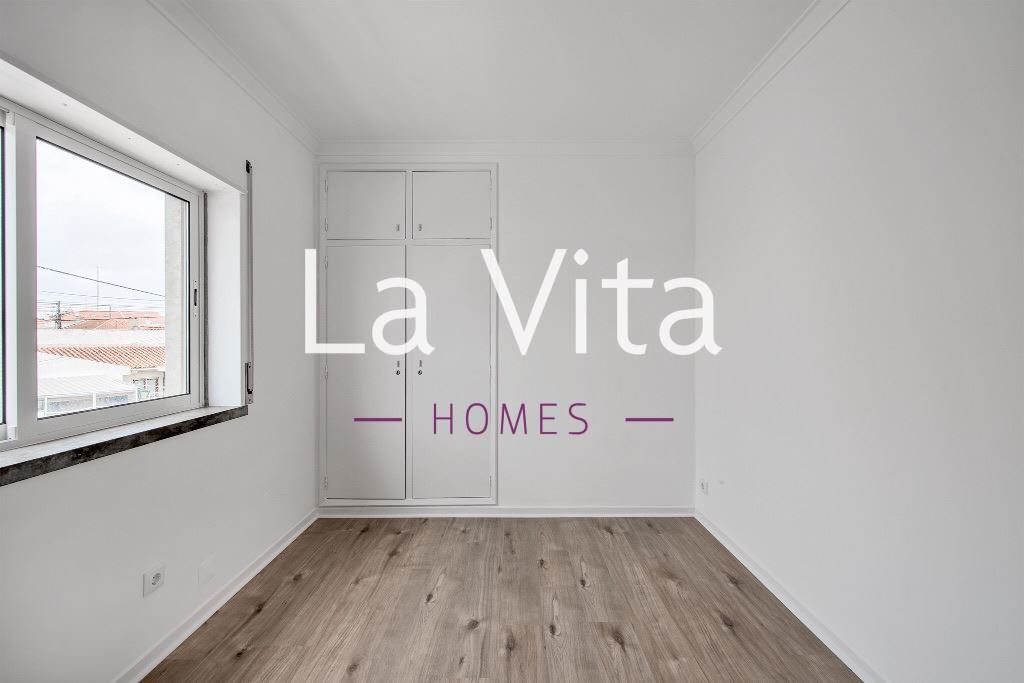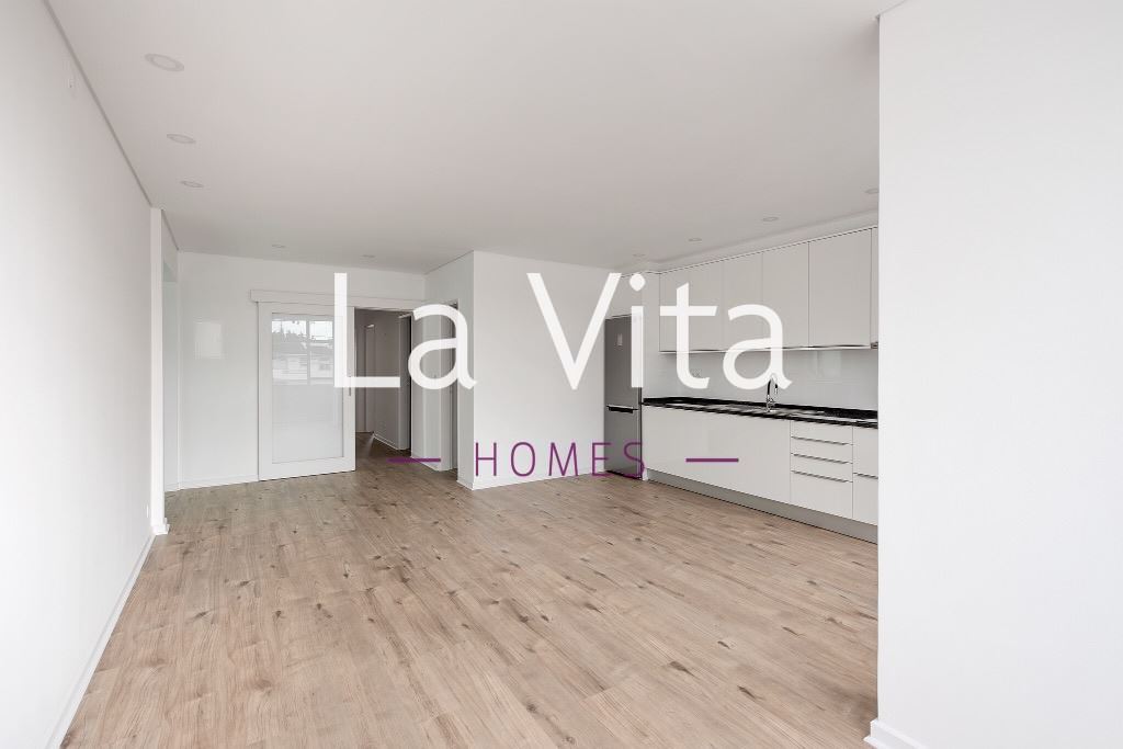 Composto por sala com varanda, cozinha americana equipada, 3 quartos com roupeiro, 1 wc completo e 1 wc social.