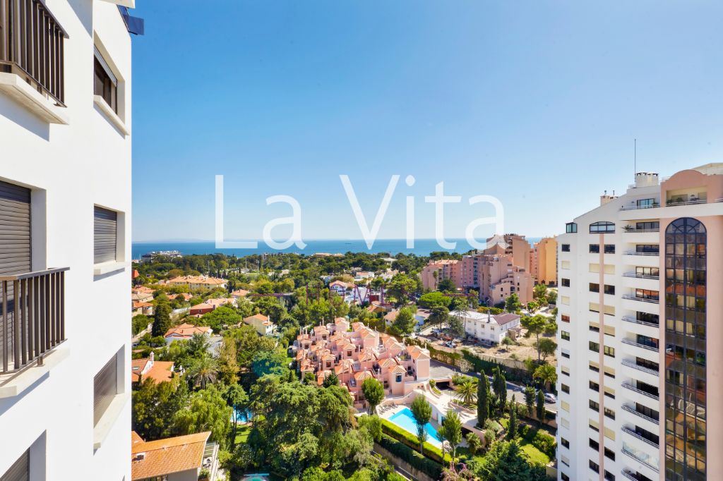 Edifício de prestígio, onde as paredes revestidas com lindíssimo mármore italiano guardam tantas histórias e memórias. Prédio com portaria, piscina, conduta de lixo, e outras mordomias. No apartamento sente que vive nas nuvens a pairar sobre a baía de Cascais.
