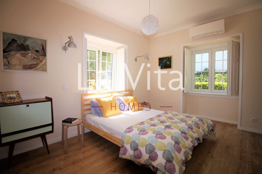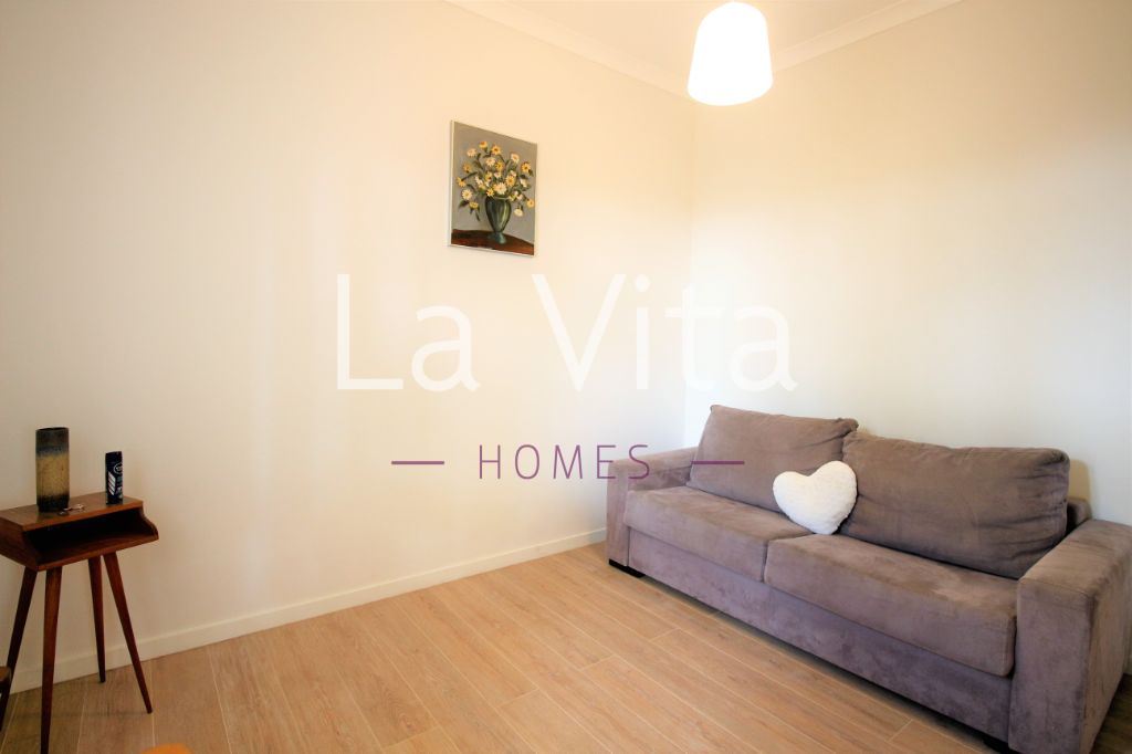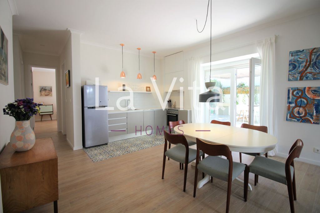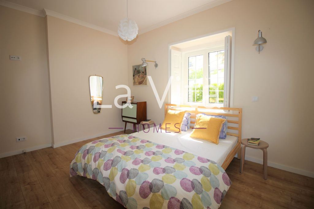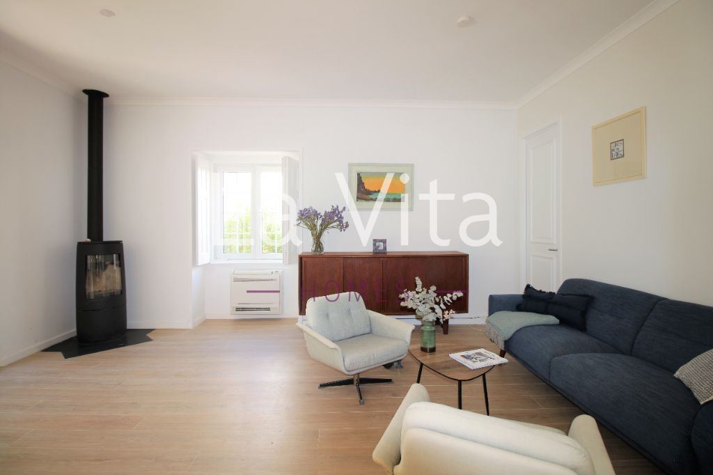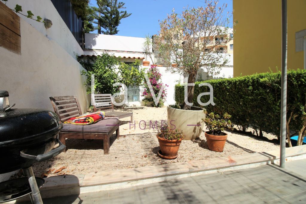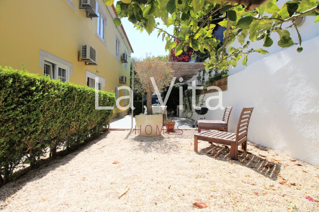 jardim privativo de 155m2. Ideal para quem procura um espaço exterior para desfrutar em família, com possibilidade de construir piscina. Sala (32M2) com salamandra, com cozinha integrada em open space com acesso direto ao jardim, dois quartos, suite (15 m2) com roupeiro e wc com banheira e janela, wc completo com base de duche.