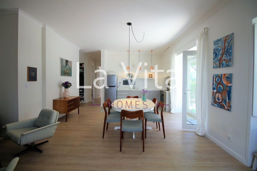Apartamento de charme invulgar em antigo Chalet no coração do Monte Estoril, a menos de 1 km da praia e da Marginal. Remodelado com qualidade e requinte. T3 com
