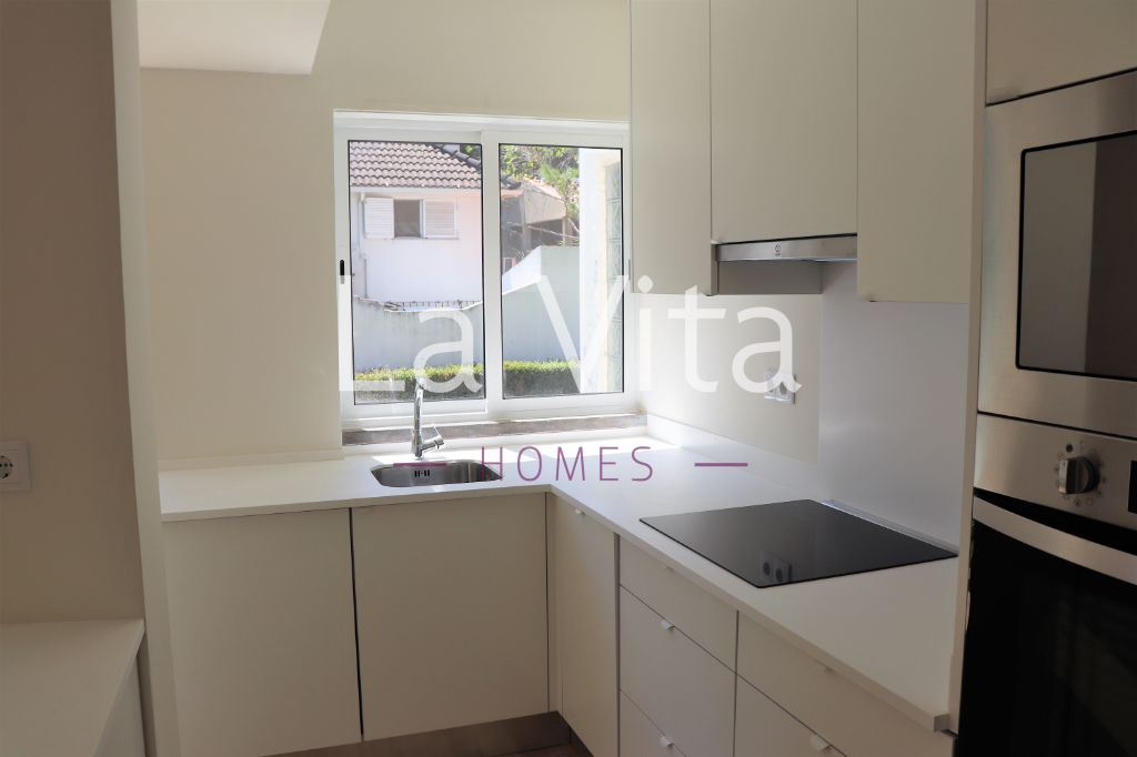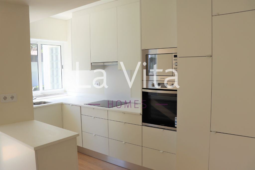 Apartamento totalmente remodelado com ótimas áreas e agradável jardim junto ao prédio. A 10 minutos a pé do centro de Cascais.