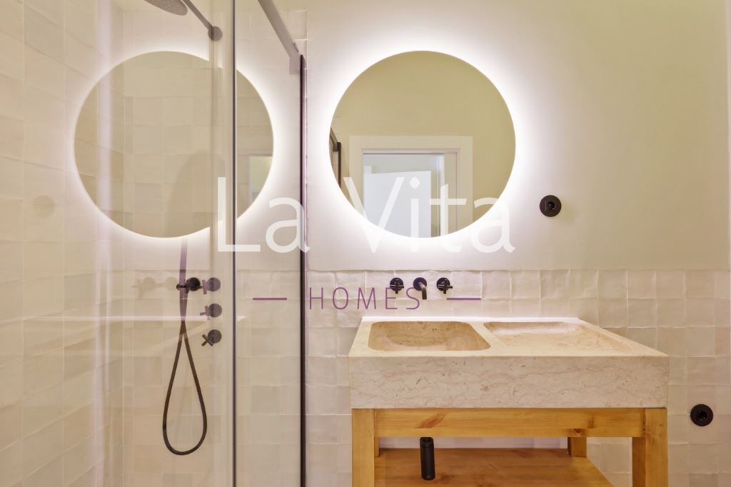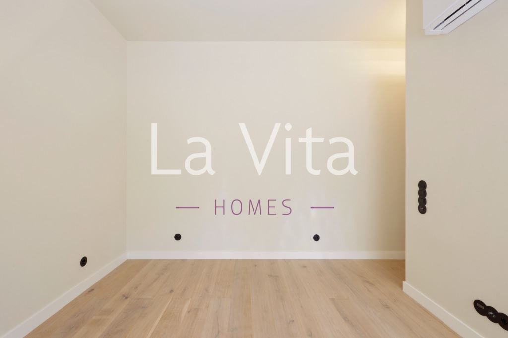 Ar condicionado apoiado com bomba de calor, caixilharia com vidro duplo e corte térmico, estores elétricos.