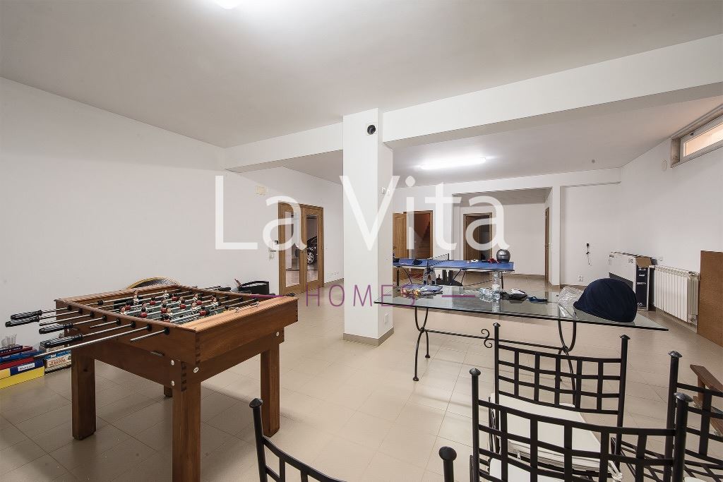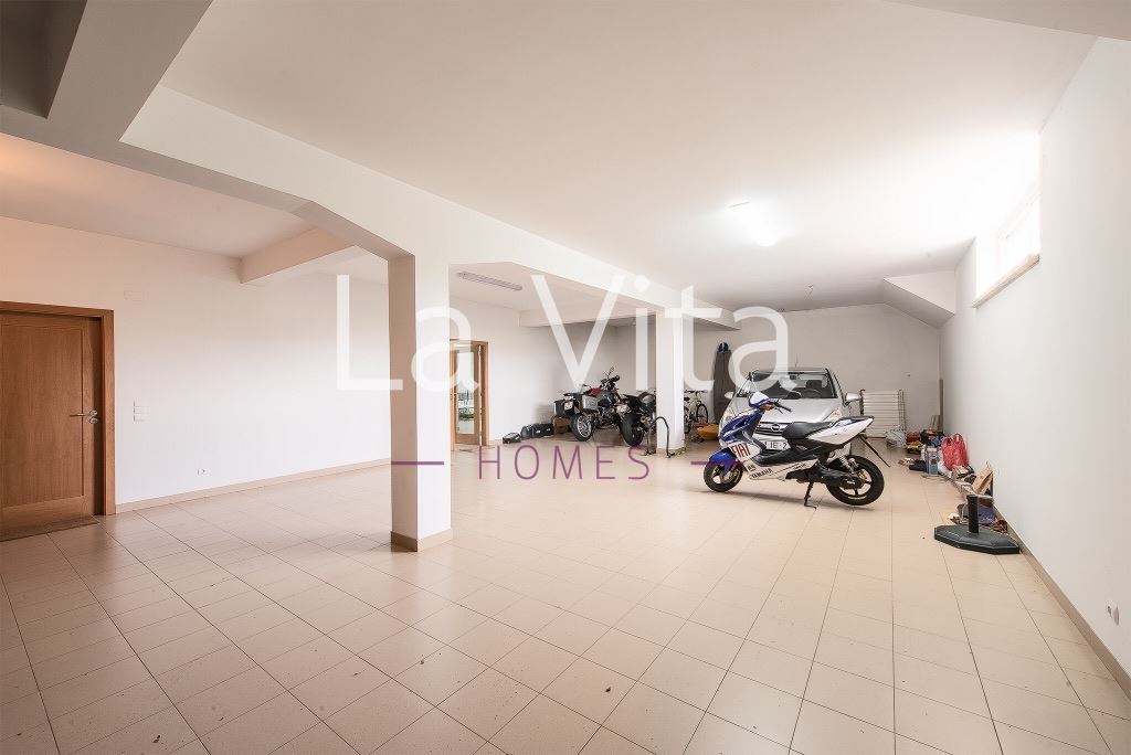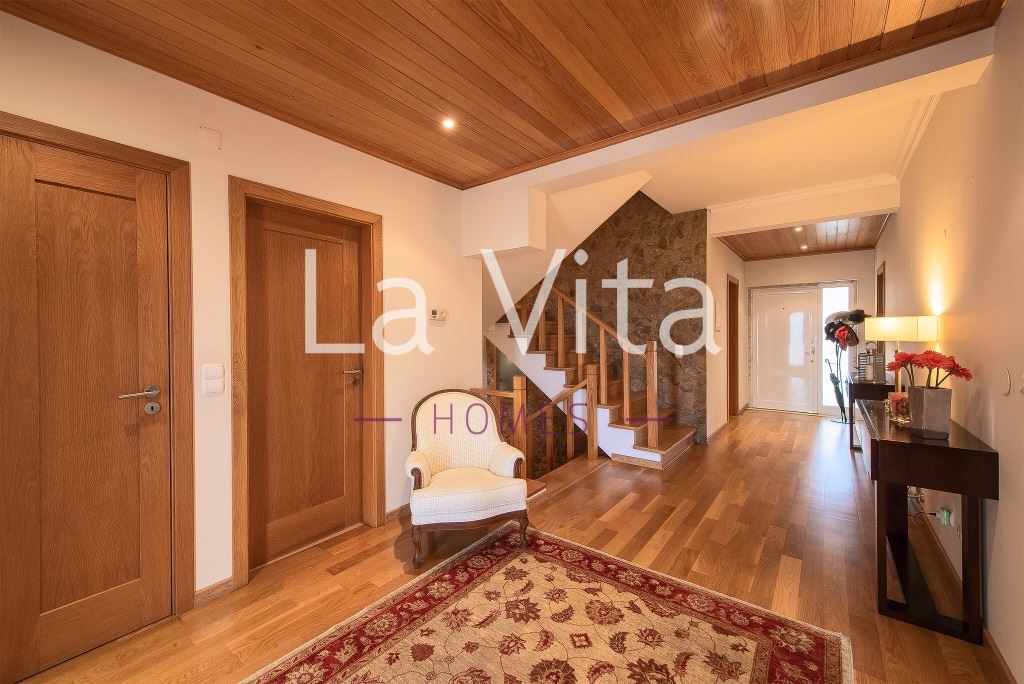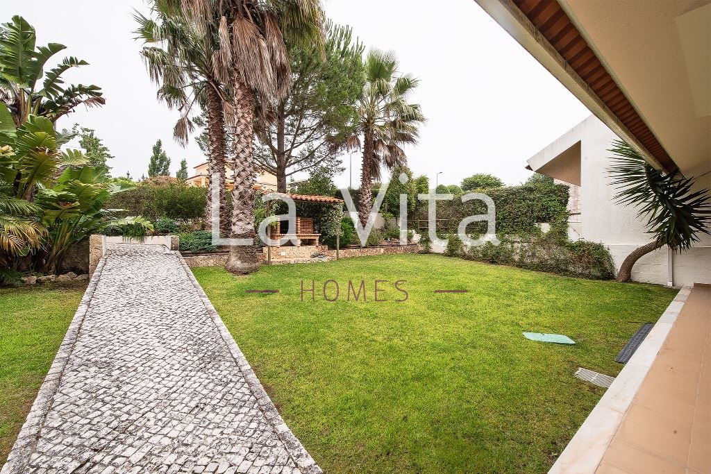 A moradia tem uma área de construção de 488m2 e está inserida num lote com cerca de 650m2.