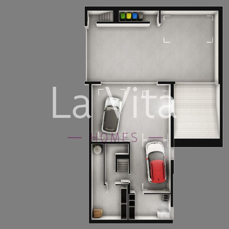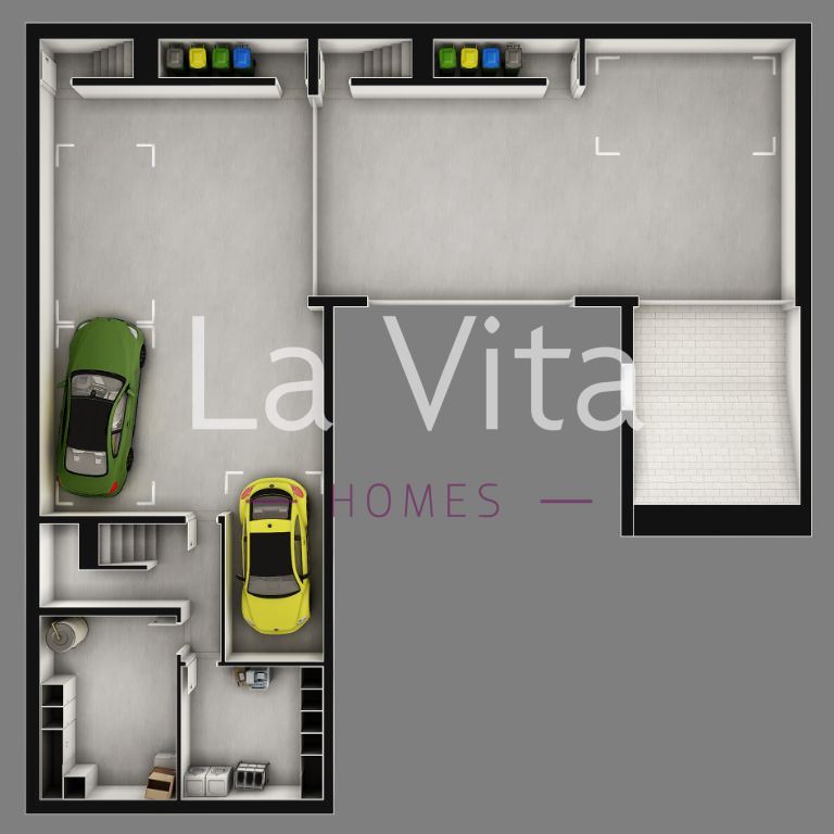 Piso -1: garagem com mais de 90 m2, arrecadação e lavandaria.