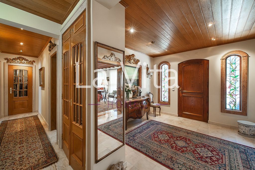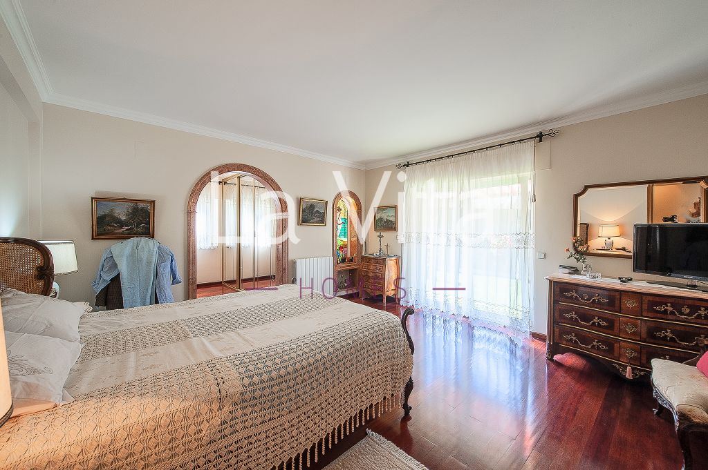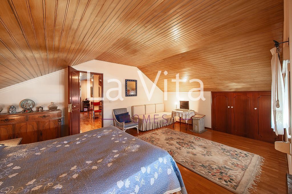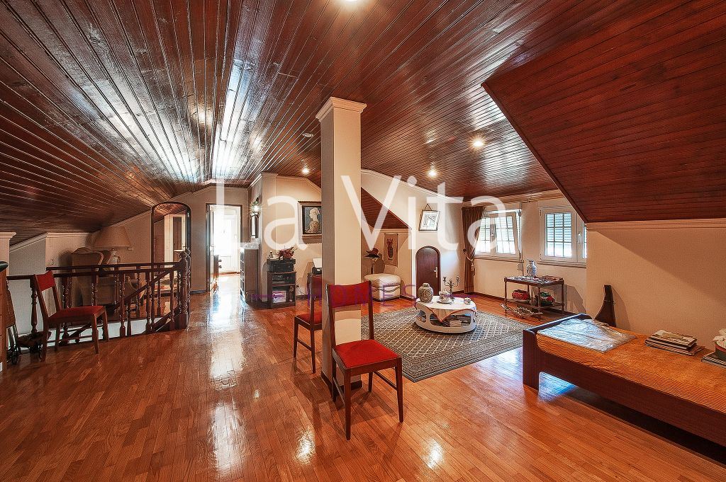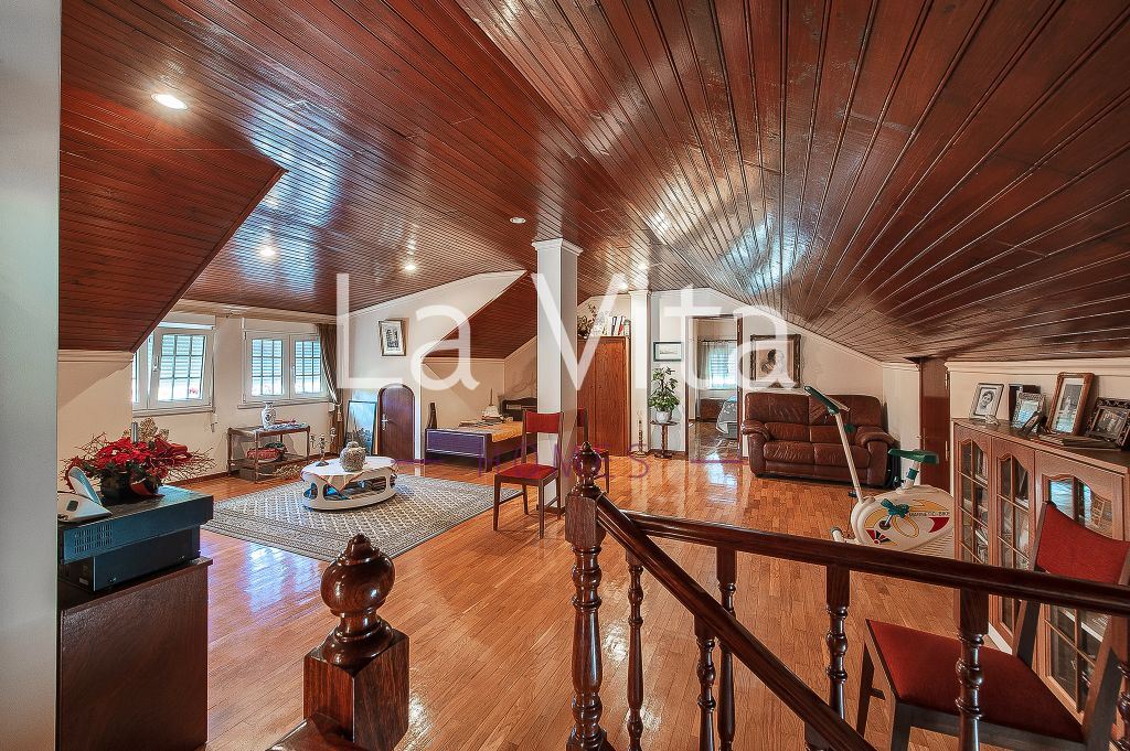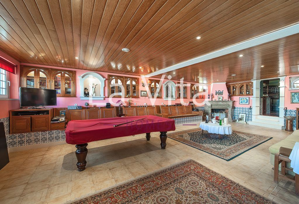 Tradicional e grandiosa de áreas e materiais, esta moradia isolada dispõe de zonas de lazer e festa únicas num lote de terreno de 745 m2. Um salão enorme com uma lareira grande de pedra portuguesa, duas suites, mais quartos e magnificas áreas comuns, cozinha, lavandaria , salão de festas ,bar e adega etc. Um terraço solário, e muitas áreas de varanda.