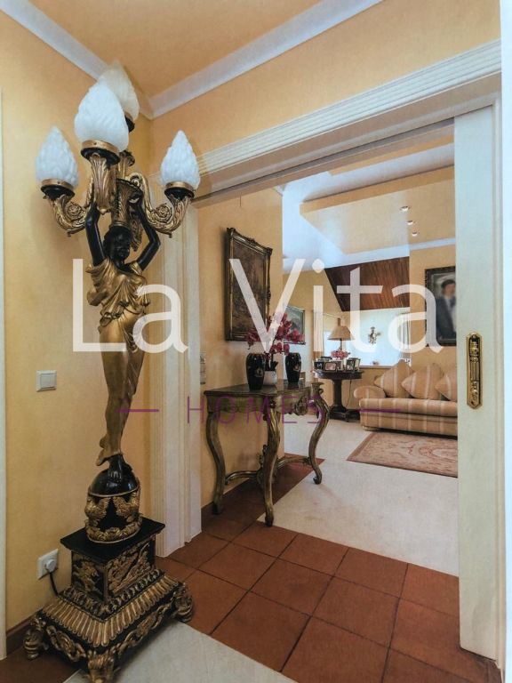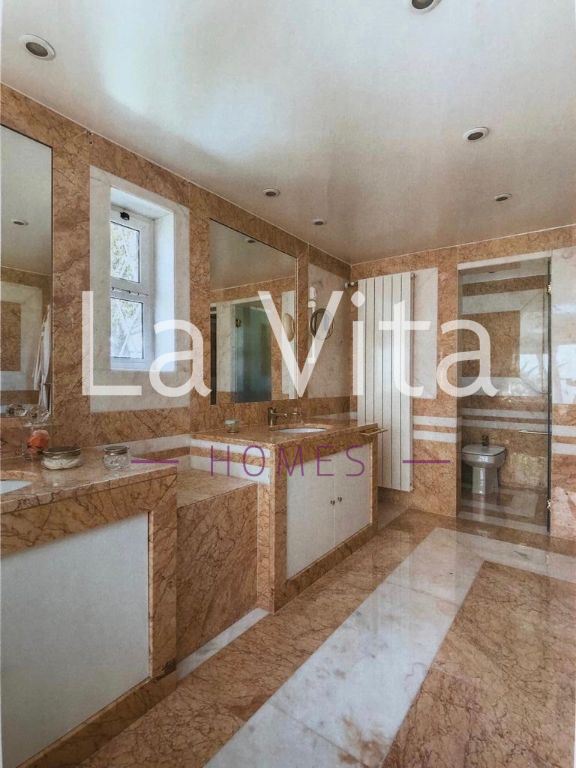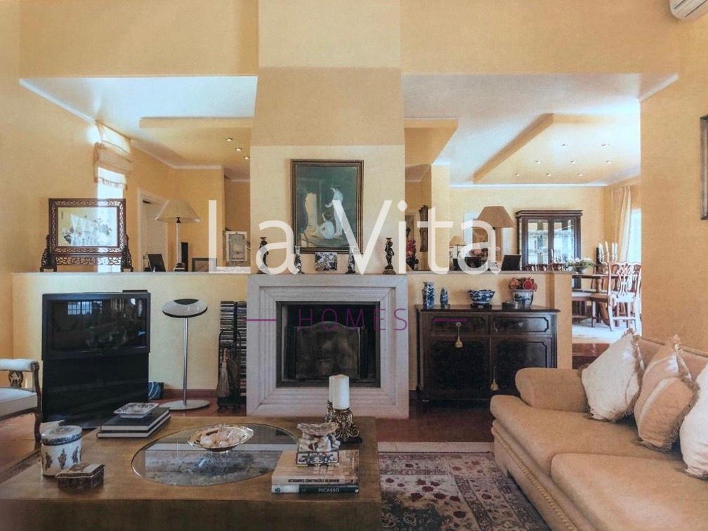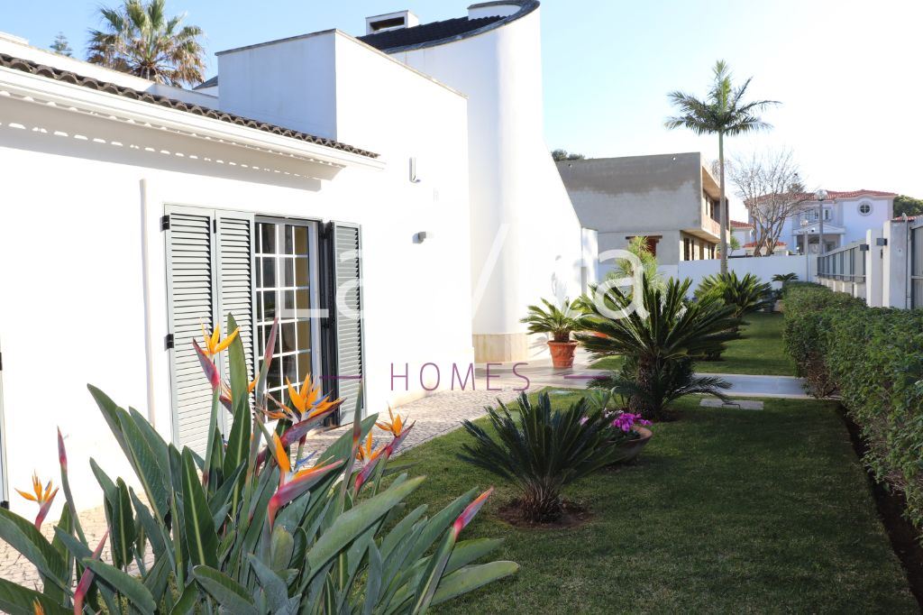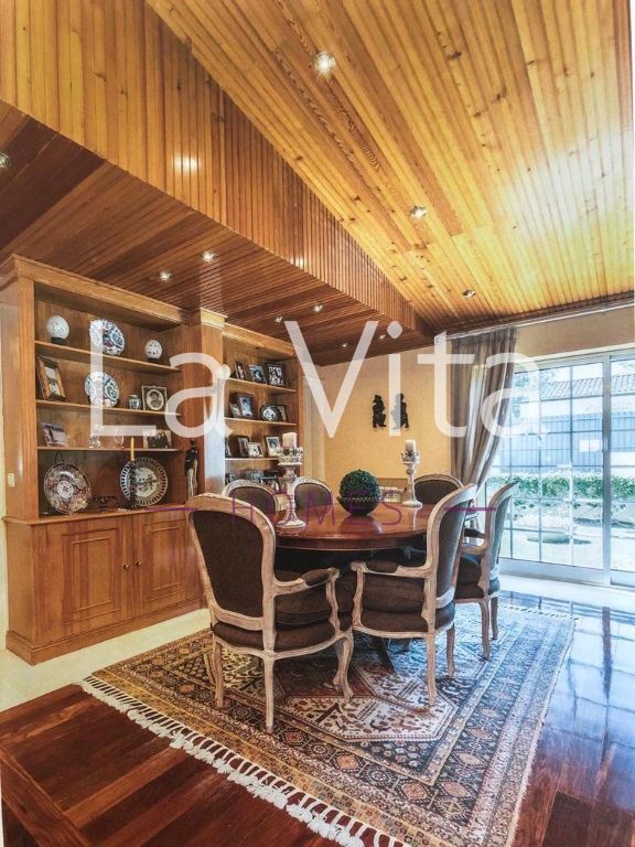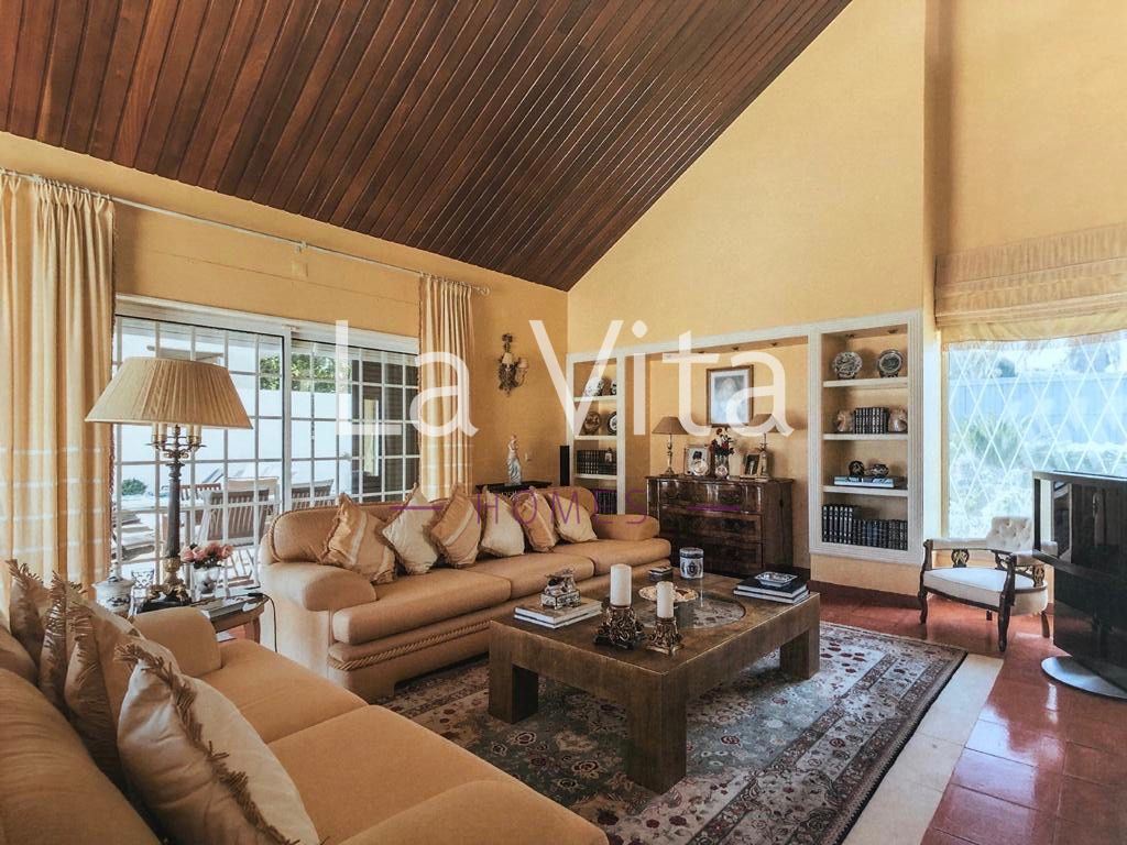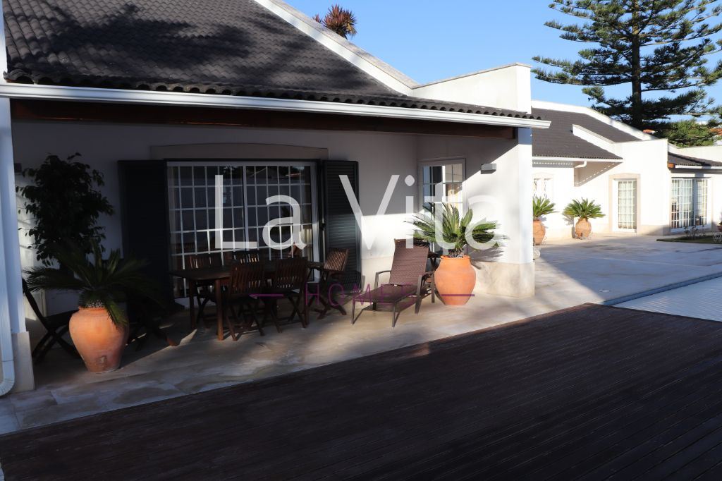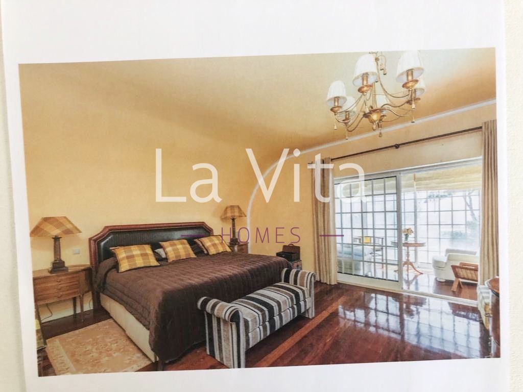 Composta por: Hall com 7 m2, salão com 74 m2 e com lareira, sala com 28 m2, sala de refeições com 35 m2, cozinha com 15 m2 e equipada, zona de lavandaria, WC social, 1 master suite com 23 m2 mais quarto de vestir de 11 m2 e lindíssimo wc com 16 m2, 2 suites com 16 m2, 1 suite com 9 m2, a casa conta ainda com um bonito jardim de inverno.