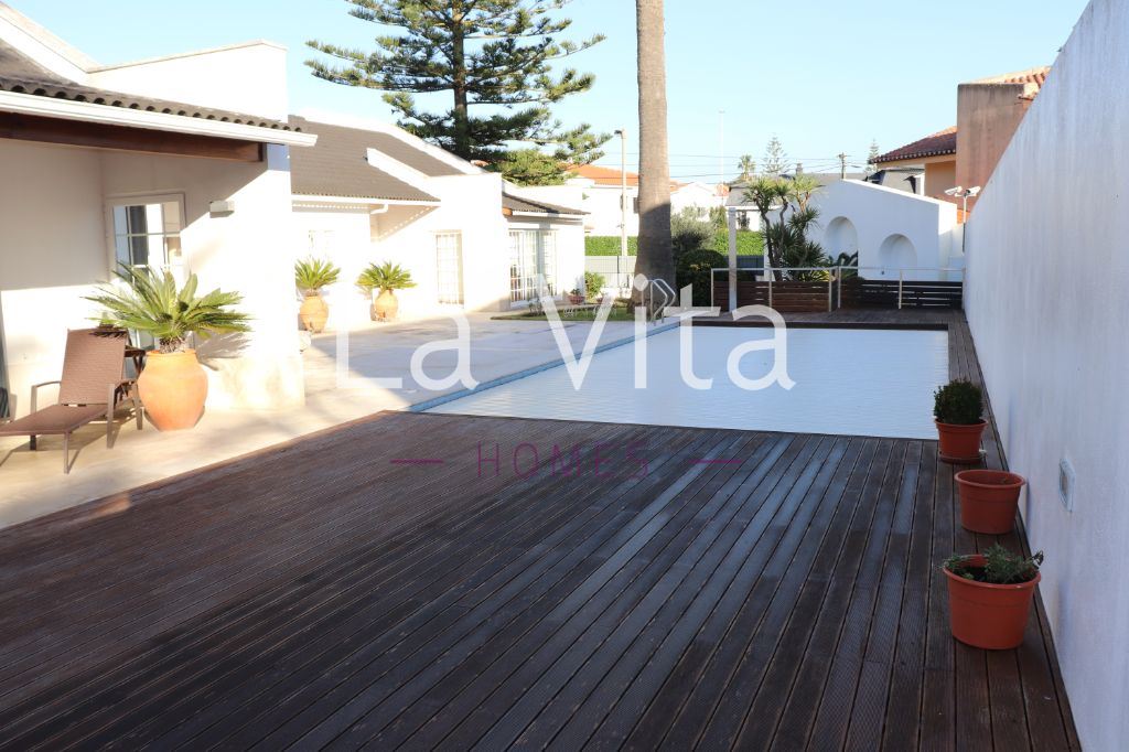 Fantástica moradia térrea, T4, inserida num lote de terreno com 1310 m2 com imenso jardim e piscina, com uma área útil de construção de 337 m2.