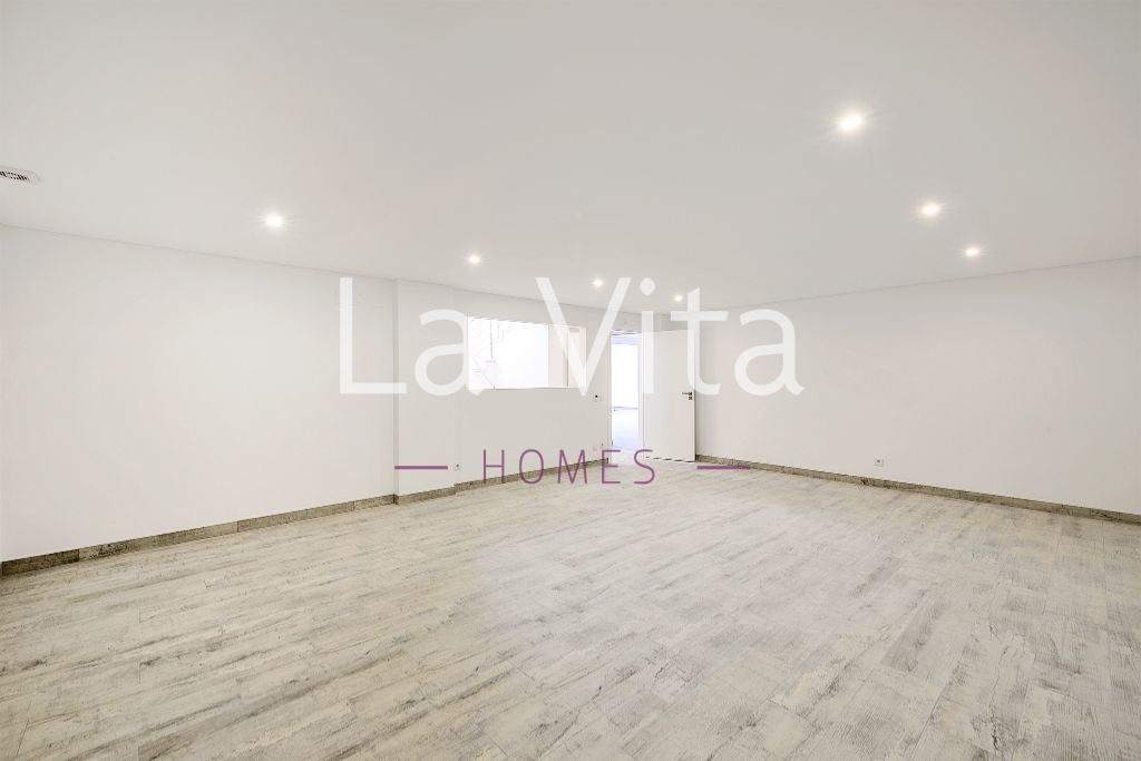 Cave - garagem com 91 m2, arrecadação com 8 m2 e wc com base de duche.