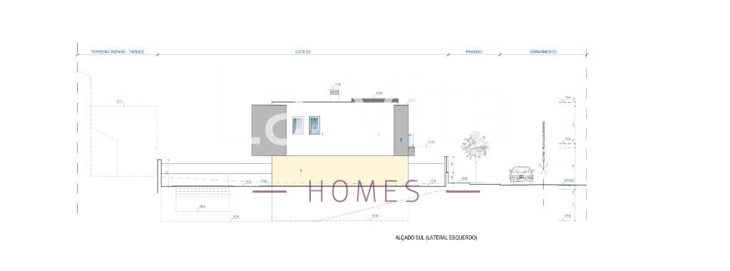 R/C - Sala (35 m2); 1 Escritório (12 m2); WC Social (3 m2) e Cozinha (14 m2)